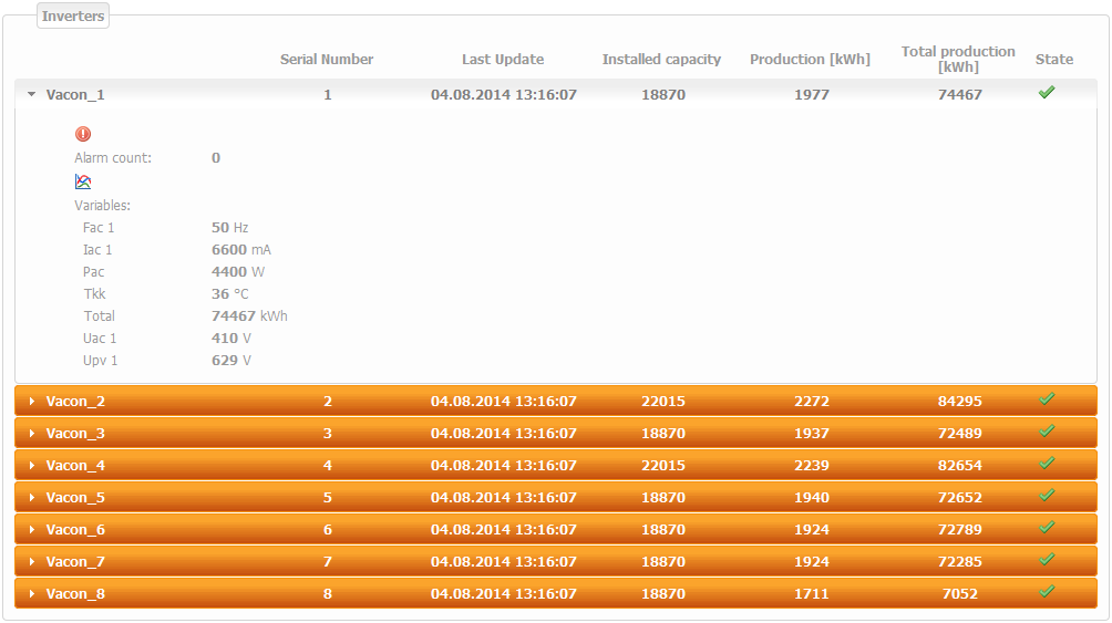 Note: It is necessary to have installed capacity of all inverters set properly in the menu Administration / Overview / Units' setting.