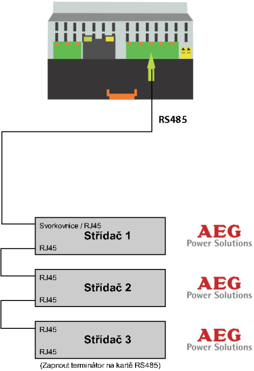 Pro vzájemné propojení více střídačů použijte rovný kabel.