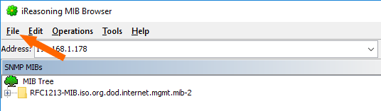 Otevřete iReasoning MIB Browser, klikněte na záložku File a poté na Load Mibs.