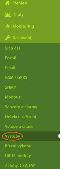 V internetovém prohlížeči si otevřete menu „Nastavení / Výstupy“.