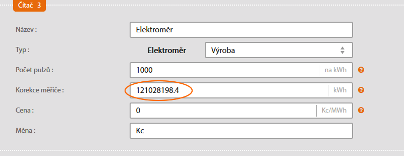 Zadejte stav na čítači (např. celkovou výrobu na elektroměru výroby).