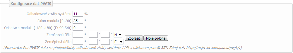 Konfigurace dat PVGIS