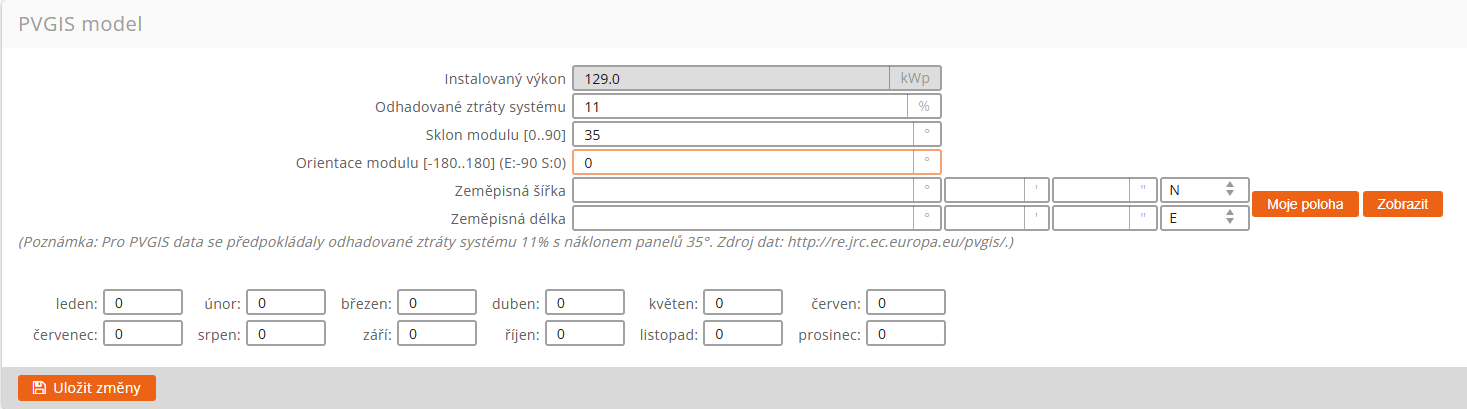 Po vyplnění GPS souřadnic s polohou Vaší FVE stiskněte tlačítko