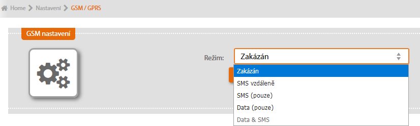 Pokud máte k SM2-MU připojený modul SM2-GSM, zvolte dle potřeby jeden z nabízených režimů.