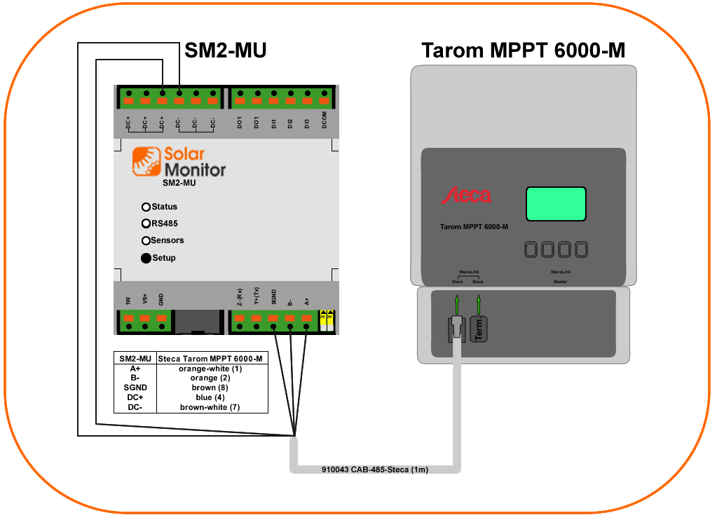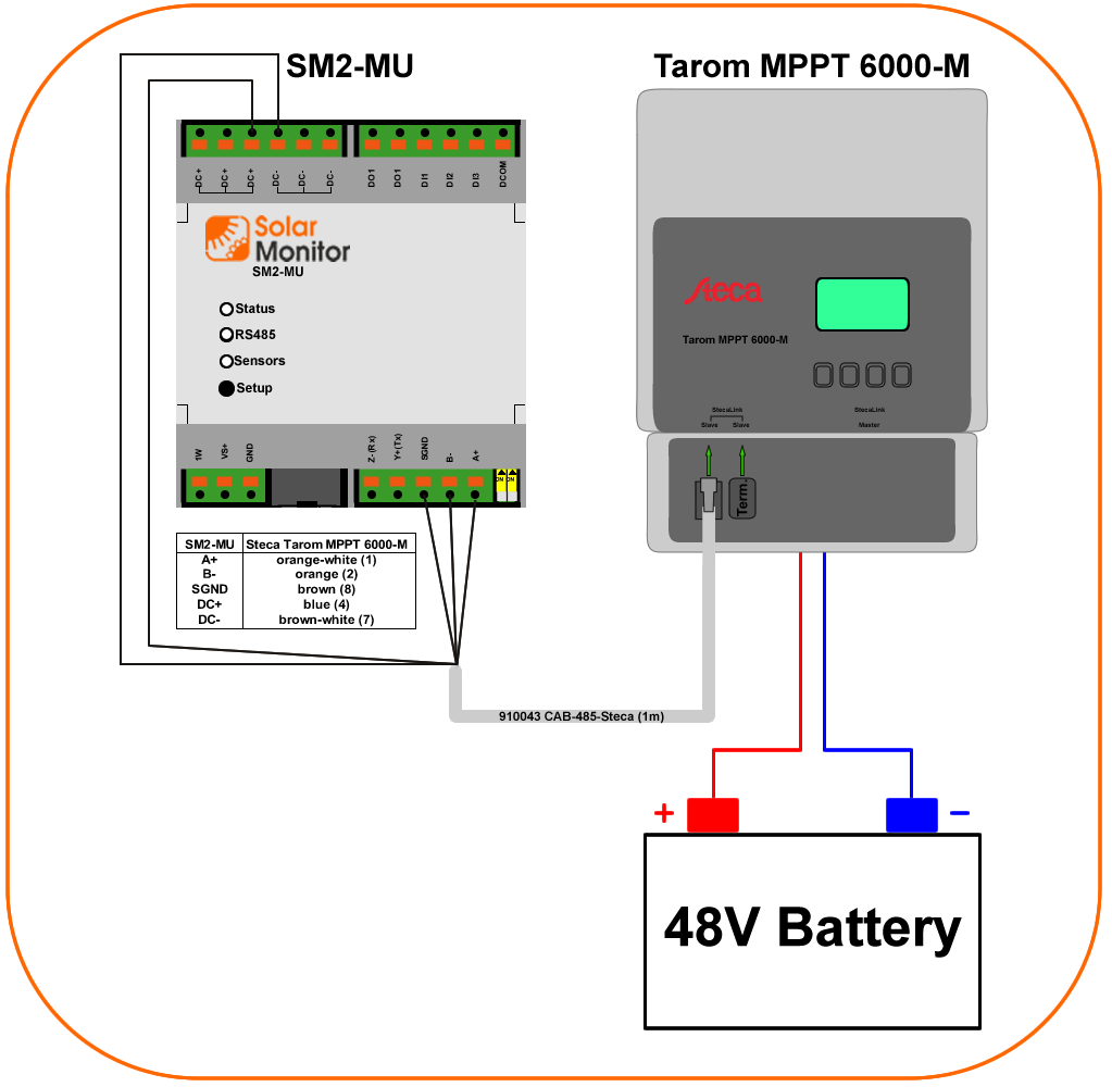 SM2-MU powered from battery 12 or 24 V which is connected to the Tarom MPPT 6000-S