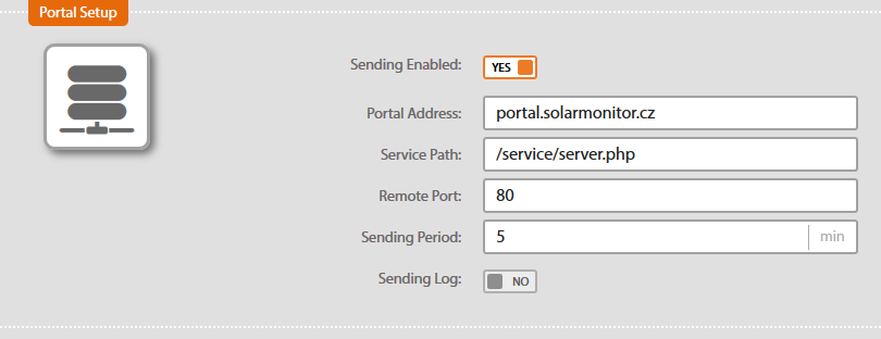 Enter IP address or name of the portal to which Solar Monitor unit should connect (e.g. portal.solarmonitor.cz).
