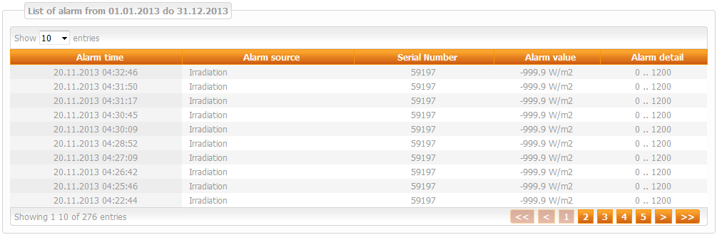 Recorded alarms can be presented for daily, monthly or annual period. Time period stipulates the day (days) of presented alarms.
