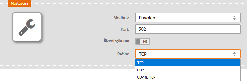 Port pro komunikaci zařízení. Jako výchozí hodnota je nastaven port číslo 502 (nezáleží zda TCP nebo UDP). Na tomto portu jsou prováděny dotazy paketama. Součástí paketu je Modbus device address (adresa zařízení). V případě potřeby proveďte změnu.