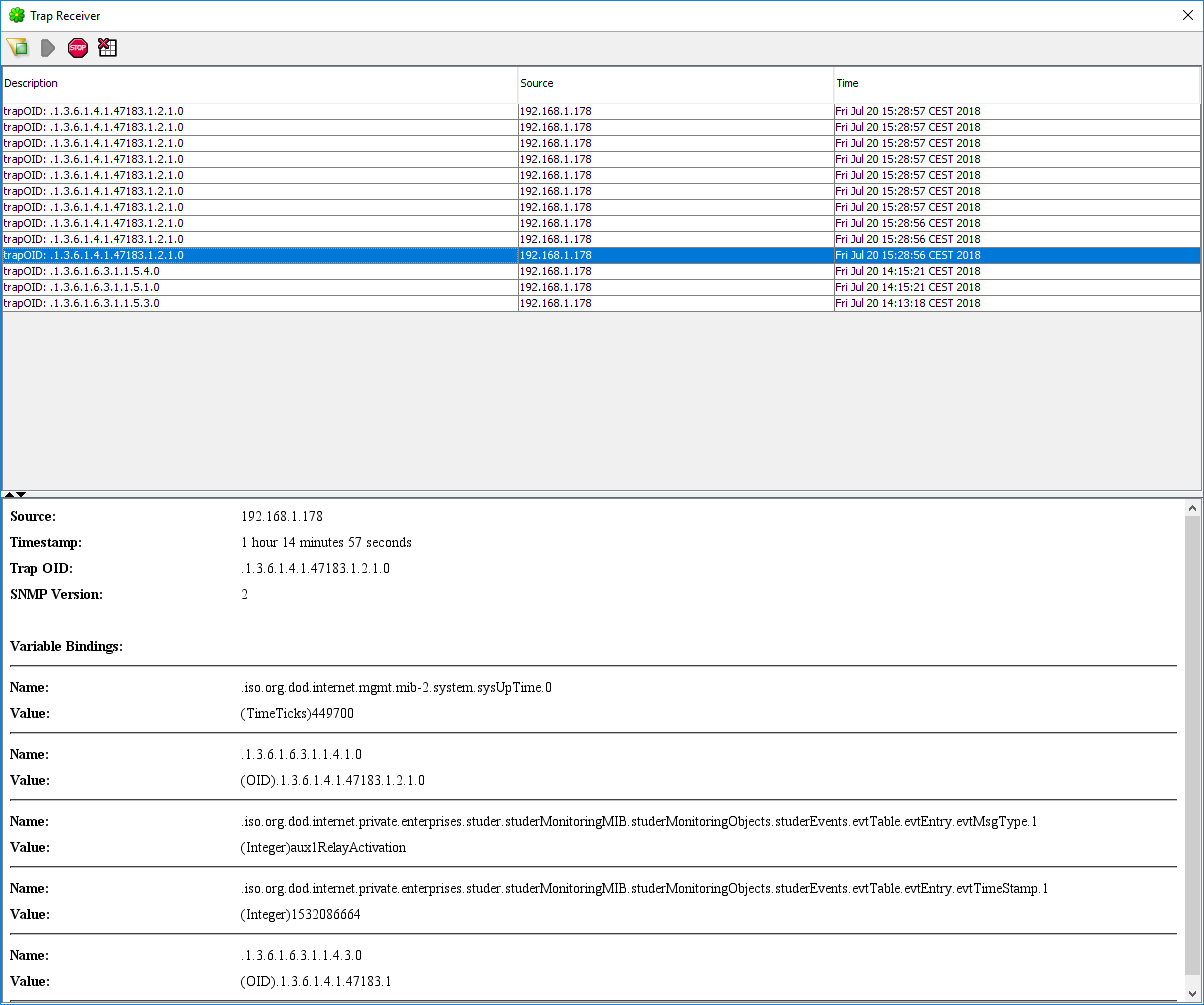 Zde můžete vidět Trapy přijaté ze Solar Monitoru. Kliknutím na zvolený trap zobrazíte detaily.