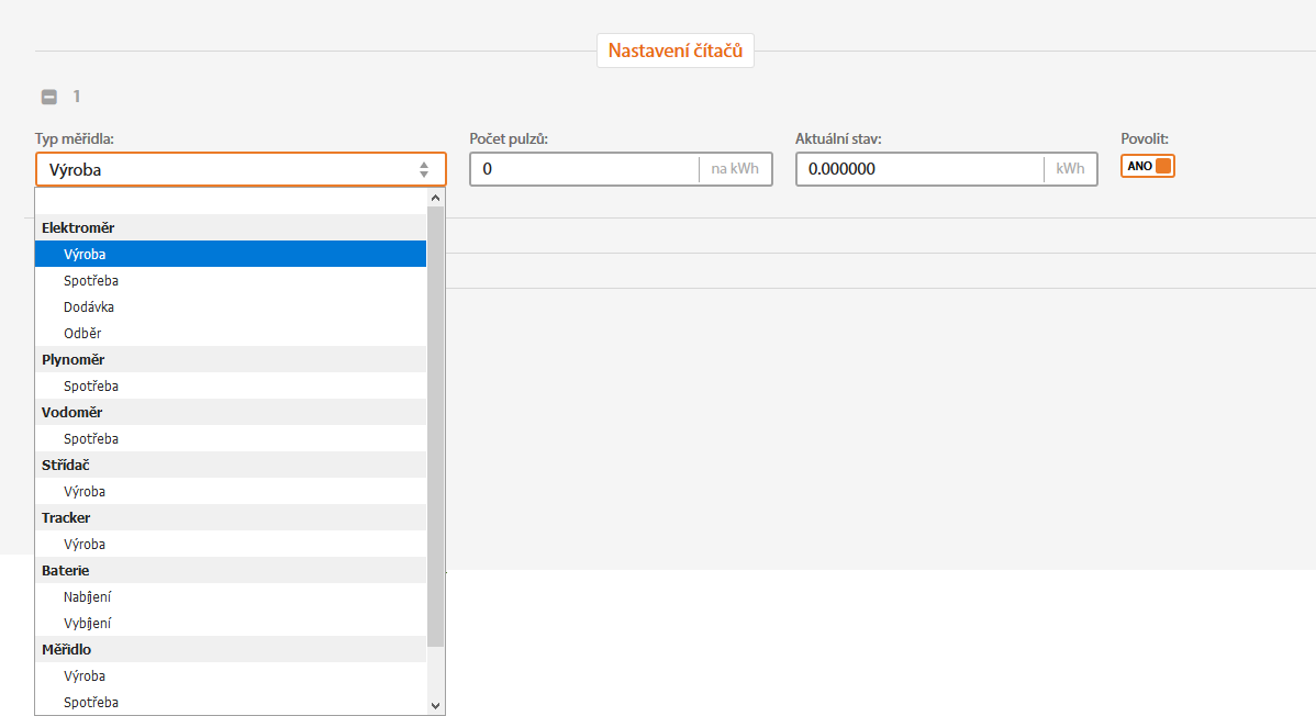 Dále zvolte o jaký čítač se jedná.